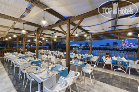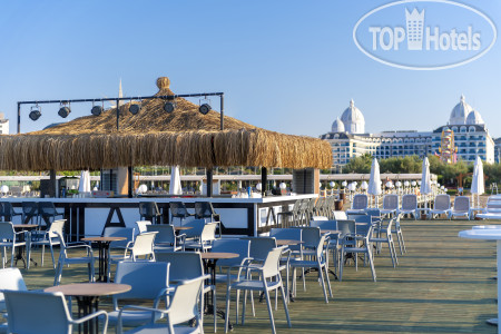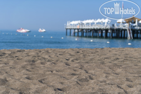 3.Территория, пляж, развлечения. Территория очень компактная, вытянутая. Одна главная дорога по пути к пляжу, по обе стороны которой расположены бассейны, бары, развлечения. Погулять на территории отеля негде, очень не хватило лавочек, гамаков на травке и просто зон отдыха на природе. Все очень плотно понатыкано, так как территория не большая. Порадовало, что есть зоны 18+ (отдельный бассейн релакс где всегда тихо, зона в ресторане и за этим следят, с детьми не пускают ). Пляж большой, шезлонгов всегда хватало, даже после 10 утра можно спокойно найти место (конечно не на 1,2 линии). Пирс классный с баром, бармены все приветливые, коктейли отличные! Брали на несколько дней кабаны на пирсе и на пляже. На пирсе понравилось на много больше. Каждый день в амфитеатре вечером представления, понравились акробаты и турецкая ночь. Представления рассчитаны на 2 недели, поэтому не повторяются. После представления живая музыка, дискотека на пирсе.