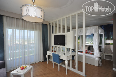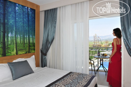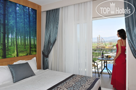 Отдыхали в этом отеле компанией с 28 сентября по 9 октября. Отзывы на момент покупки тура были очень разные... Рядом находятся три отеля этой сети: наш Lake & River Side Hotel & SPA 5*, Sorgun Akadia Luxury 5* и самый большой и ближе всех к Port River Hotel & SPA. От отеля на пляж ходит автобус по расписанию (остановка за горками, около реки), пешком средним шагом от главного входа 20 минут по хорошей прогулочной дорожке. Рядом с отелем река Манавгат и стоянка пиратского корабля и маленького катера, за 10$ вам устроят на них прогулку. ⛵ Заселили нас в 13:30, номер светлый, мебель стандартная, новая. Перечислю то, чего нет: чайника, чашек, ложек, стаканов. Из мыльно-рыльных только шапочка для душа, ватные палочки и гель для душа 2 в 1 в дозаторе. Территория отеля небольшая, большой бассейн, 5 взрослых горок, есть детская аквазона, шезлонгов много, бар у бассейна работает круглосуточно, бар в лобби до 00:00, бар на пляже до 17:00. На пляже в баре шампанское, вино, пиво, кола, спрайт, чай, кофе, айран, вода. Готовят лаваш с начинками, бургеры, пиццу, картофель фри, луковые кольца. Пляж большой, песок (после отлива открывалась небольшая полоса из мелкой гальки), много лежаков, море суперское! В лобби-баре крепкий алкоголь, вкусные коктейли, в принципе у бассейна тоже коктейли норм. Ребята на баре и официанты очень вежливые, готовы откликнуться на любую просьбу). Да и вообще ни разу не столкнулись в этом отеле с какой-то грубостью, невежливостью. Единственное, что оставило осадочек😃, это то, что на день рождения мужа не было комплимента от отеля (заявлено в концепции). Ну да ладно. 😓 Дневной анимации нет от слова совсем😆, пару раз видела играющих в водное поло людей, но как выглядят аниматоры, осталось загадкой. Вечером мини-диско, потом шоу или караоке. Питание отличное, большой выбор мяса, рыбы, субпродуктов, овощей, бывают дни морепродуктов (лангустины, мидии, кальмары разных видов, форель). На ужин каждый день что-то жарят на вертеле при входе в ресторан и на улице на гриле стейки рыбные и что-то из мяса. Несколько раз видела, что готовят кебаб. В турецкую ночь угощали огромным тортом из мороженого. К питанию никаких претензий, 6 из 5😋 Расположение отеля не очень удобное, до Манавгата на автобусе минут 15 (55 лир), до Сиде (старый город) минут 25. До небольшой прогулочной цивилизации минут 20 пешком. Уборка и смена полотенец каждый день, пополнение мини-бара тоже ежедневно (сок, фанта, кола, сода, вода, пиво Эфес в ж/б). Пляжные полотенца по карточкам с 8-17 ежедневно в спа-зоне, в которой имеется хамам, массажисты и крытый бассейн). Подведя итог, могу сказать, что отель хороший, питание супер, но неудобное месторасположение, лично мне не хватило каких-то дневных спортивных активностей, типа аквааэробики, йоги или что-то в этом роде (к слову, тренажерный зал в отеле есть, но без слез на него не взглянуть😆) и места для вечерних променадов. И да, если ветер в сторону отеля, то вечером будет нестерпимо вонять конским навозом🐴, т. к. рядом ферма. За наши 11 дней таких дней было 4🤢 Надеюсь, мой отзыв будет кому-то полезен🤓, хорошего всем отдыха🌴☀🌊